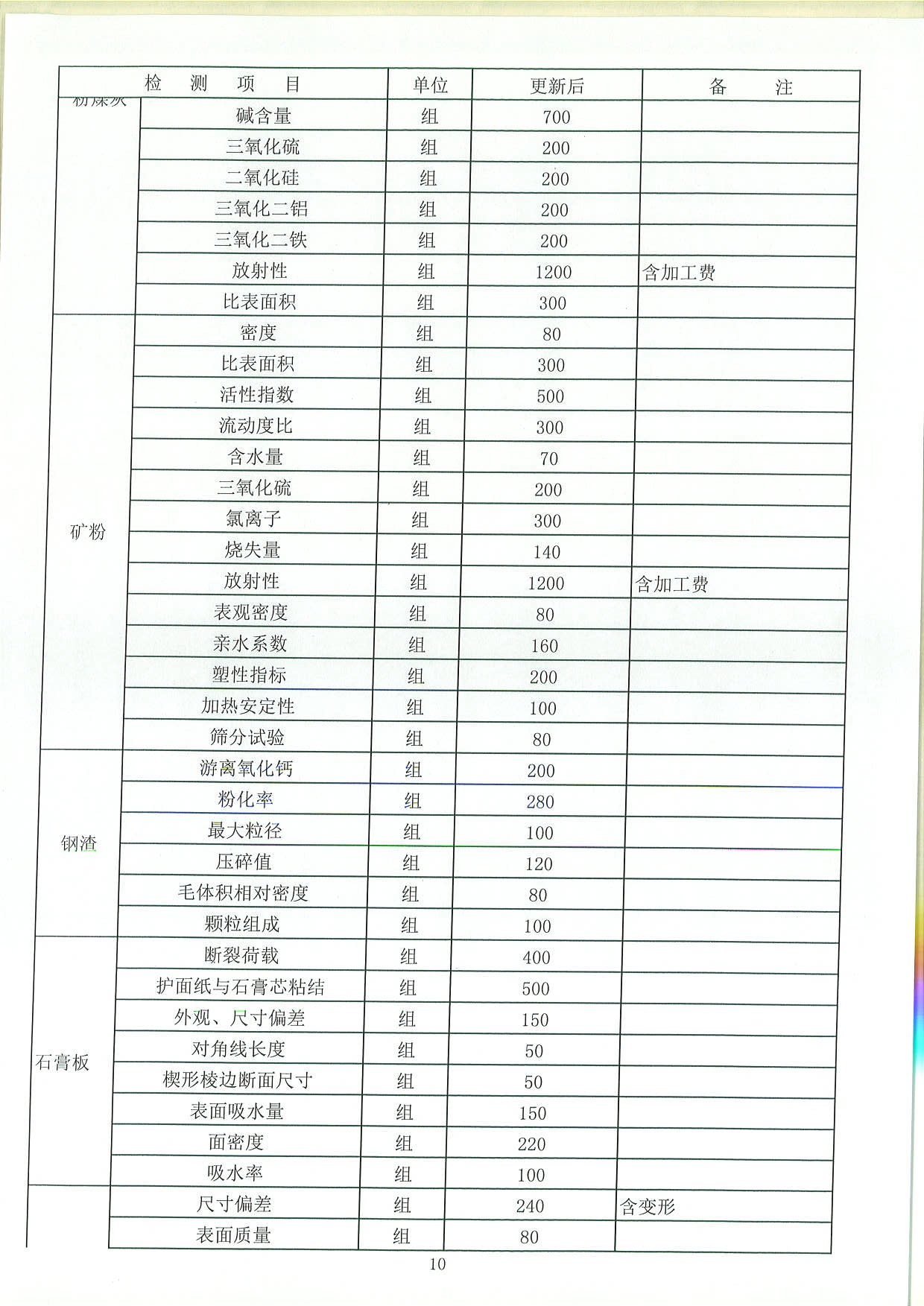 收费标准